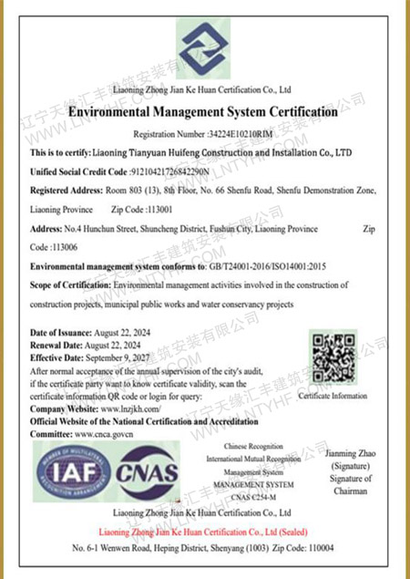 環境管理體系認證證書
